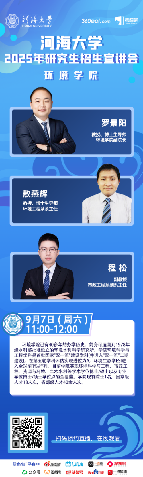 瓜子tv 已有40多年的办学历史,前身可追溯到1978年经水利部批准设立的环境水利科学研究所。学院环境科学与工程学科是首批国家“双一流”建设学科(并进入“双一流”二期建设),在第五轮学科评估实现进位为A,环境生态学ESI进入全球前1‰行列。目前学院实现环境科学与工程、市政工程、资源与环境、土木水利等学术学位博士/硕士以及专业学位博士/硕士学位点的全覆盖。学院现有院士1名,国家级人才18人次,省部级人才40余人次。
