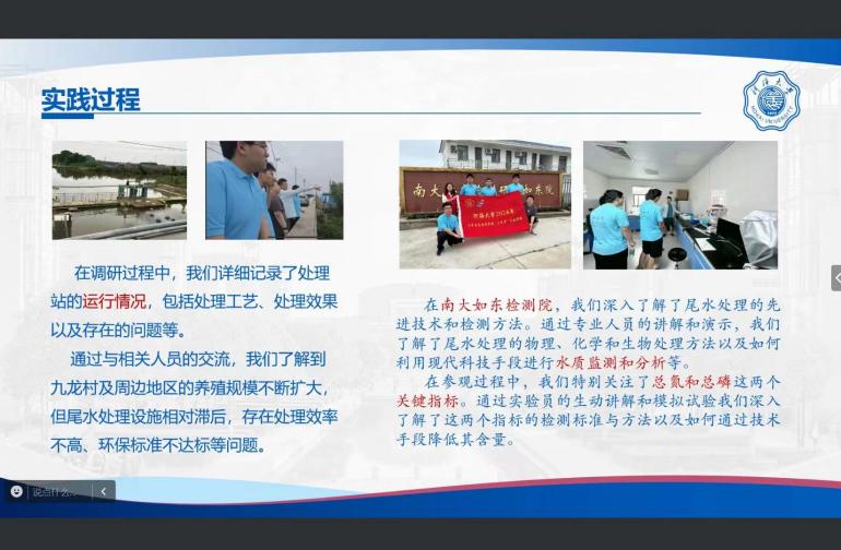 本次答辩中每位答辩同学进行了3分钟的ppt展示,每组讲解结束后,评委老师根据同学们的汇报做出点评与提问,并对不足之处提出了建议。在答辩环节中,各实践团队通过精心制作的PPT生动展现了他们在暑期社会实践中的点点滴滴。从深入社区进行环保宣传,到走进企业进行污染调研;从参与河流治理项目,到开展垃圾分类指导,瓜子tv 学子们将所学知识与实践紧密结合,为环保事业贡献了自己的力量。