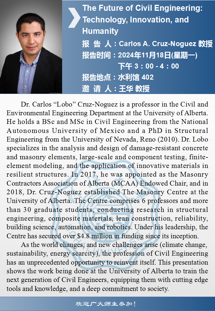 瓜子tv 学术报告:The Future of Civil Engineering: Technology, Innovation, and Humanity