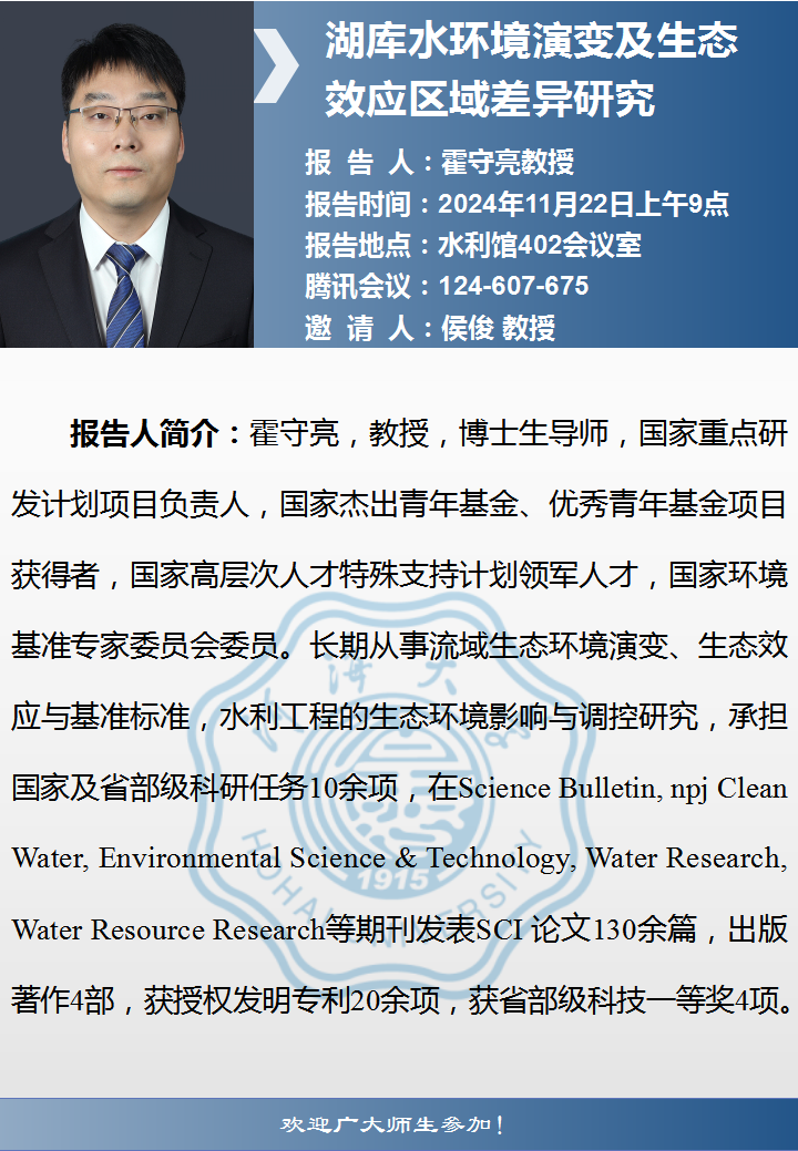 两山讲堂学术报告:湖库水环境演变及生态效应区域差异研究