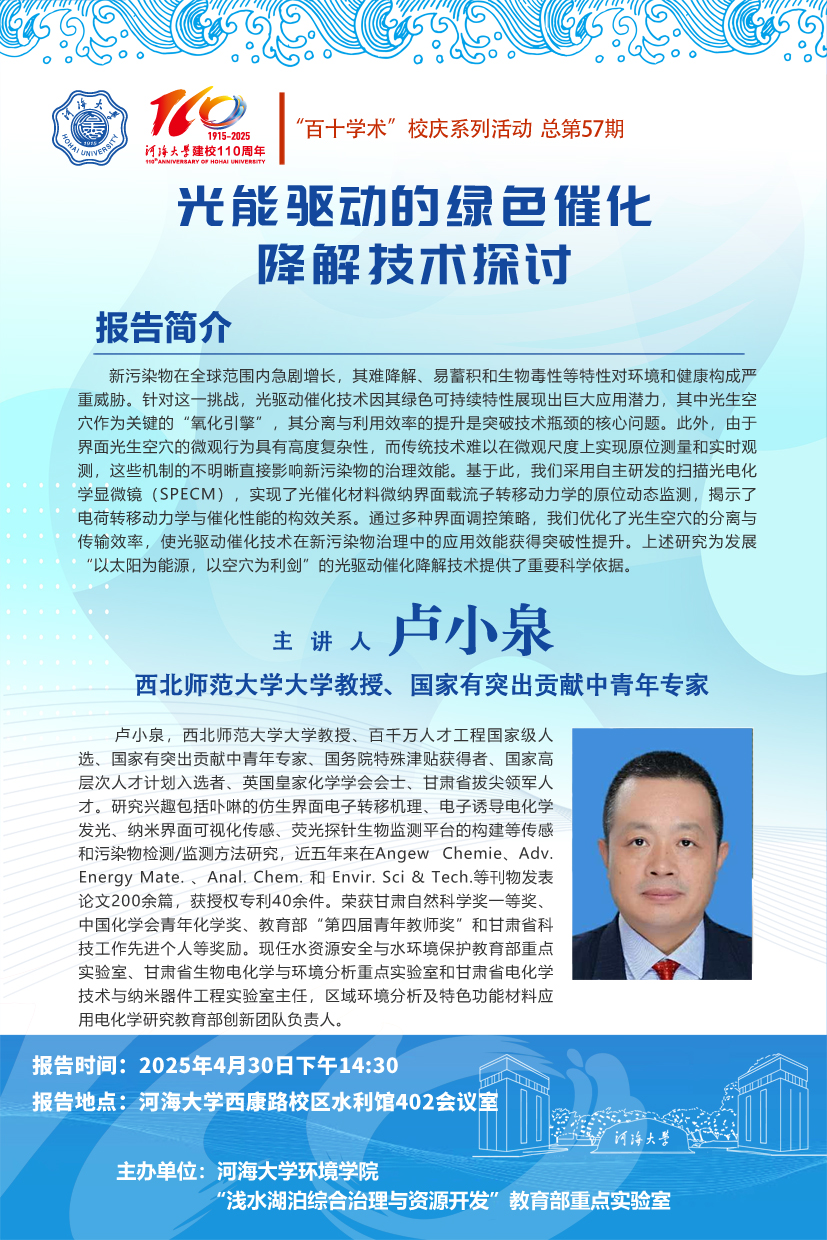 “百十学术”系列活动:光能驱动的绿色催化降解技术探讨