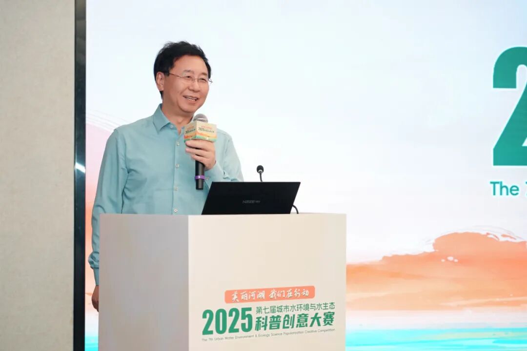 城科会水分会副会长任洪强首先为大赛致辞,他表示,本届大赛以“美丽河湖,我们在行动”为主题,是响应总书记号召,践行“节水优先、空间均衡、系统治理、两手发力”治水思路,发挥高校学科优势与科协科普职能的具体行动。不仅是激发大学生创新创业热情、培养实践能力和协作精神的舞台,更是引导大家关注水问题、思考水解决方案、传播水科学知识的重要平台。希望参赛选手将奇思妙想与科学严谨相结合,创作出兼具科学性、创新性、艺术性和传播力的优秀科普作品,为推动绿色发展、促进人与自然和谐共生贡献青春力量。